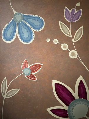 Jennifer is a self-taught painter who was introduced to the art industry at a young age through her family of artists and craft vendors. She traveled across the US and Canada to various shows and art markets with her Mother and Grandparents, gaining a profound appreciation for art and entrepreneurship. Jennifer explored various mediums, from bone carving to pottery making to beadworking. In 2015 she discovered a stippling technique that transformed paint into a beadwork-like design, which she fell in love with.